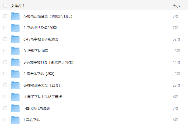 想练字却找不到合适字帖?楷书结构写不好、行书练得没流畅感、英文手写丑,连田字格 / 米字格这类练字模板都凑不齐?这套电子字帖合集太全乎了!楷书、行书、瘦金体,还有英文、古代书法字帖,甚至练字格子模板都有,想练啥字体都能找到对应资料~