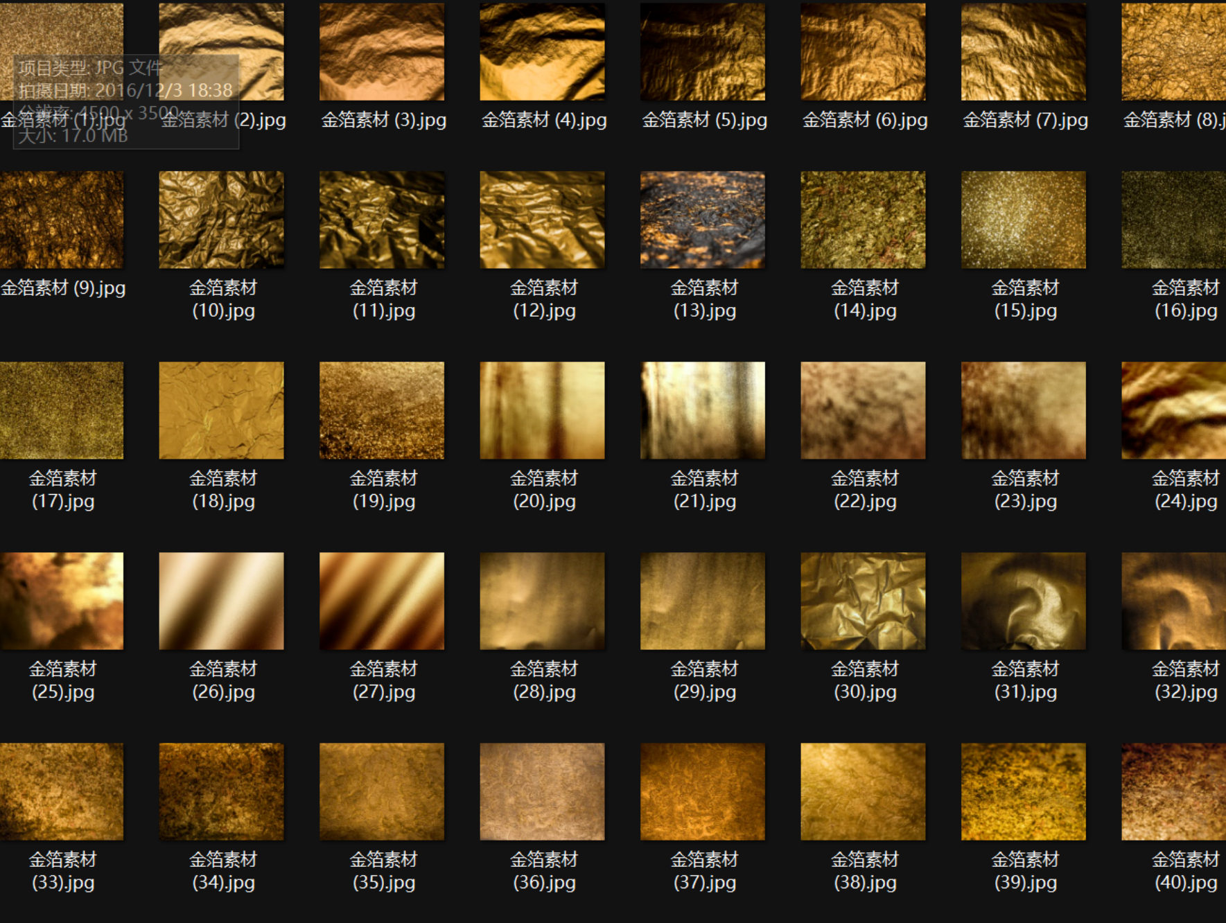 - 素材数量直接拉满:光是金箔素材就有 “金箔素材 438 张”“金箔素材 125 张”,还有 “各种闪金素材 150 枚”“全 Gold(50 枚)”,从细腻的金箔纹理到夸张的闪金效果,风格跨度特别大。