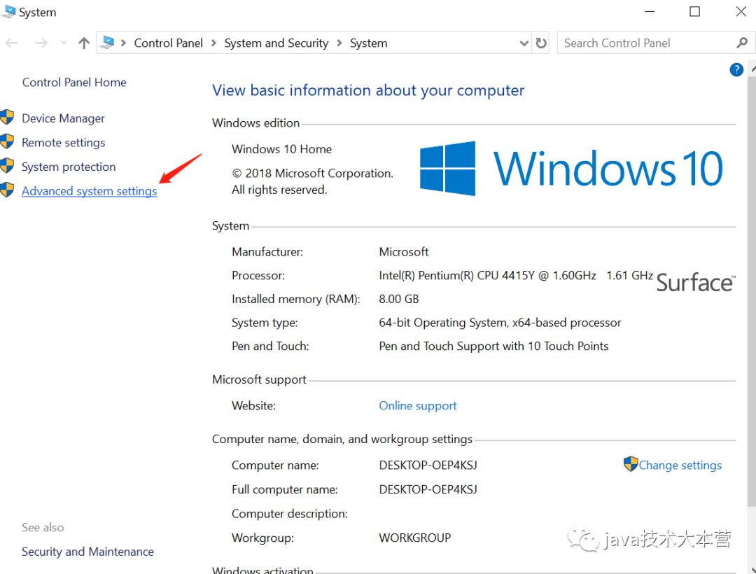 在JAVA中我们习惯用JAVA_HOME这个变量来表示java的安装目录,然后就按照上面的步骤,我的电脑打开->空白处右键->属性->高级系统设置->环境变量。