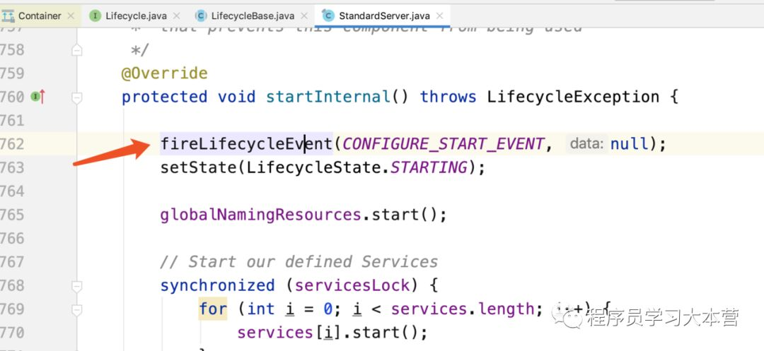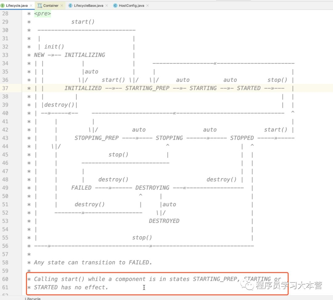 同样,我们可以去看到,start也是一个类似的过程,所以这四个方法, 是贯穿整个tomcat生命周期的,推动着tomcat的运行