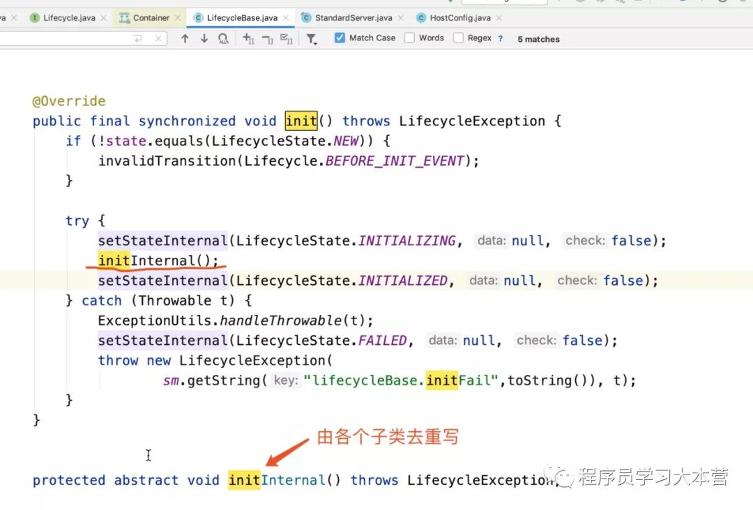 我们可以看到, init执行的LifecycleBase类中的init方法,最终,是执行的StandardServer中的initInternal方法,