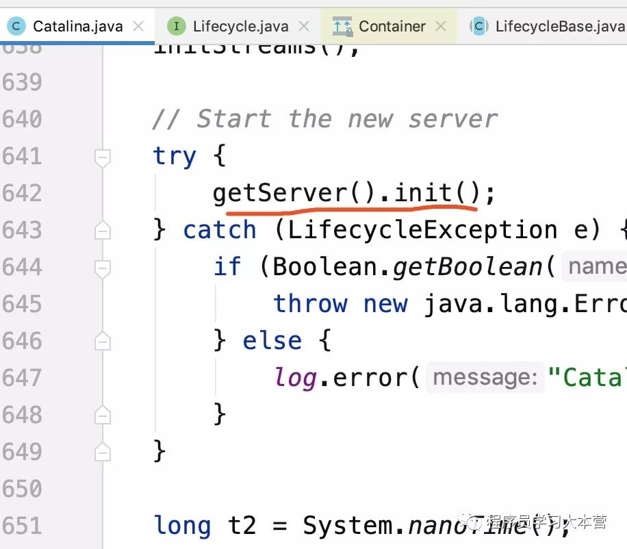 重点不在于上面的图,而在于下面话,组件通过调用不同的方法,使自身达到不同的状态,然后调用监听器list , 去通知其他的组件/配置做相应的处理,以Server 这个组件为例:,在前几篇中,我们讲tomcat 启动流程的时候,分析到这里, 会调用server.init(),实际上就是调用了生命周期的第一个阶段方法