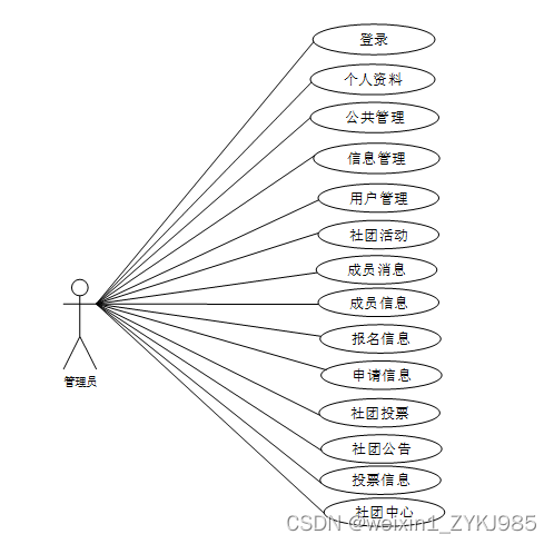 高校学生社团管理系统中管理员角色用例图如图2.3所示: