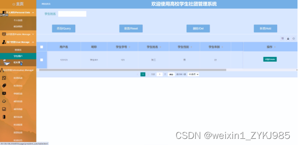 With the gradual maturity of computer science and technology, people have deeply realized that computers play a powerful role in various fields. Computers have entered various fields of human social development and played a very important role. At present, the management of student associations in schools is a systematic and complex work, which requires a team to cooperate with each other and work together. In this field, the traditional manual access or some software management methods for the information involved in the school student community often cannot track and manage the various information of the school student community in real time. In order to further improve the unified management of the management process and resources of the software school student community, more comprehensively and effectively serve the software development process, and better facilitate the management of the software development process, Therefore, this university student association management system is developed.