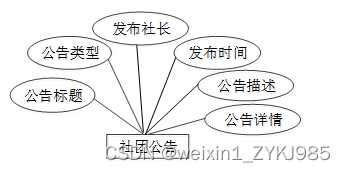 高校学生社团管理系统的E-R图主要是根据学生用户、社团用户以及管理员的实际需求设计的,用户注册以后可以查看社团投票,只有注册登录以后才可以进行投票、社团中心;管理员对整个系统的公告、用户、申请信息等进行综合管理。高校学生社团管理系统采用的是MYSQL的数据库进行存储的,数据库里面储存了很多的表信息,在此罗列出来一些主要的数据库E-R模型图。