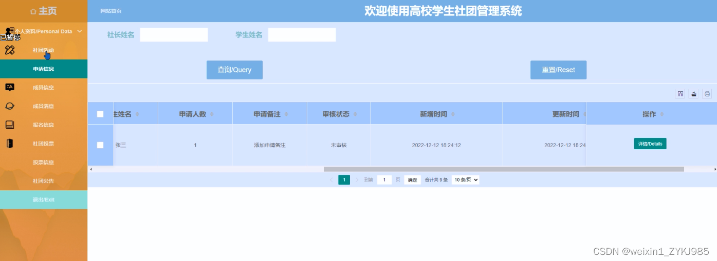 高校学生社团管理系统的设计与实现是为了让学校的使用者更加方便的进行管理物流相关联的一些信息,同时也有利于用户通过网页系统查看学生社团的信息,进行在线报名,查看成员信息,能够使得使用者查找某一信息时能节省大量的时间和精力,有效减少不必要的查找时间。