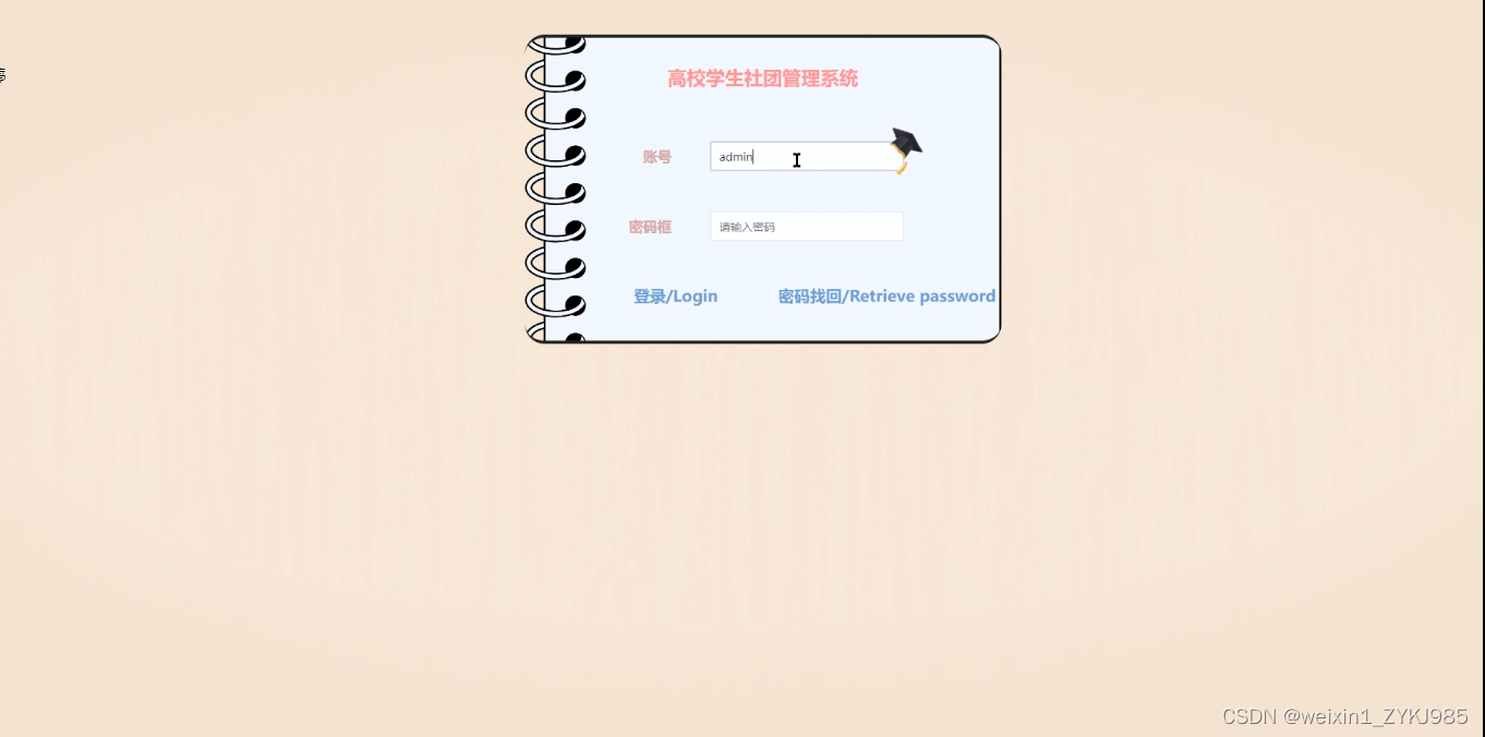 管理员在后台可以通过账号和密码进行登录,管理员的账号和密码是在数据库中直接设定的,如果忘记密码可以点击“忘记密码”进行密码找回。界面展示如下图4.10所示。