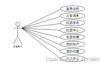 高校学生社团管理系统中学生用户角色用例图如图2.1所示: