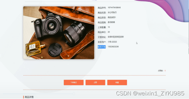 (2)用户查看商品中心:用户在商品中心页面可以进行商品信息的阅览,通过发现喜欢的商品后可以加购+购买+评论+收藏。