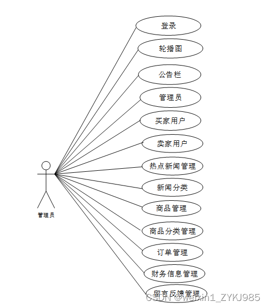 web后台管理上的管理员是维护整个跳蚤市场网页平台中所有数据信息的。管理员角色用例如图2-5所示。