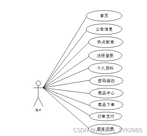 通过2.3功能的分析,得出了本跳蚤市场网页平台的用例图: