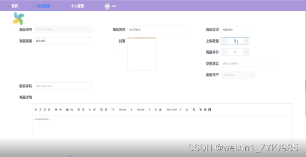 (4)商品中心管理:综合管理所属跳蚤市场网页平台中的所有的商品信息。