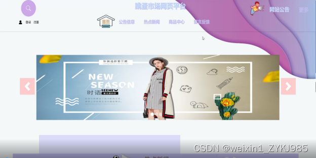 (1)网站管理:管理员可以对跳蚤市场网页平台中首页显示的轮播图以及系统中的一些公告发布到系统当中,让用户及时的查看到系统信息,进行合理安排。