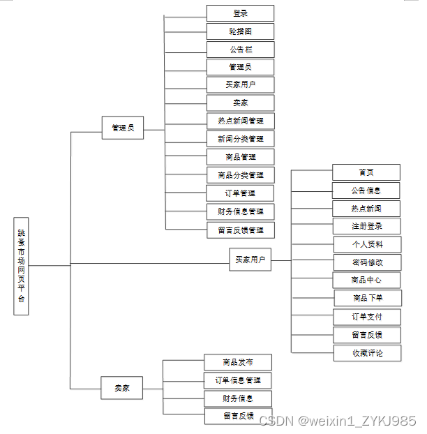 按照跳蚤市场网页平台的角色,我划分为了买家用户管理模块、卖家管理模块和管理员管理模块这三大部分。