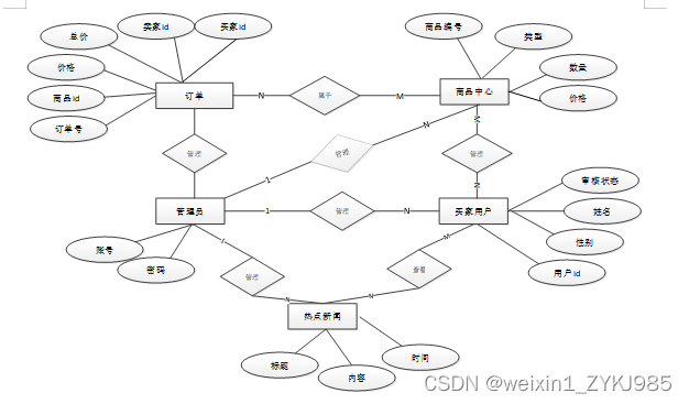 下面是整个跳蚤市场网页平台中主要的数据库表总E-R实体关系图。