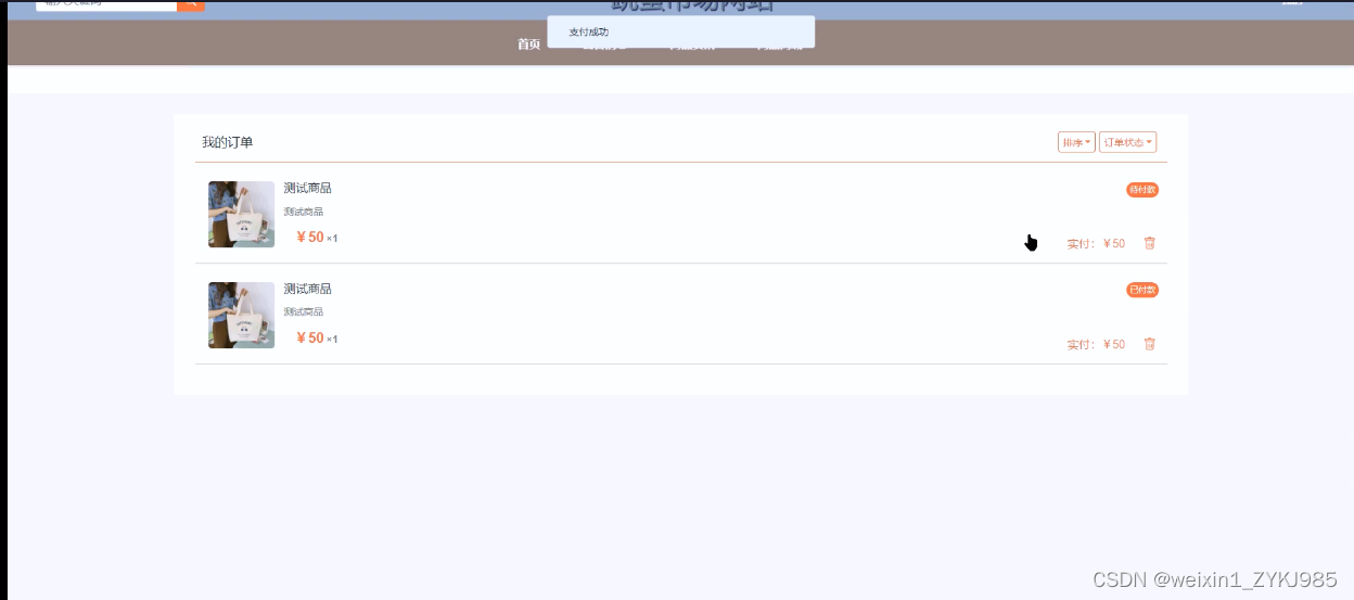 (5)我的订单:用户在提交订单后,可以对提交的订单进行管理。