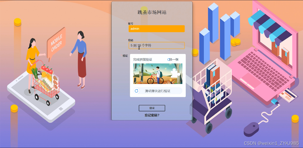 管理员,卖家在登录界面输入账号+密码,点击“登录”按钮,系统在用户数据库表中会对管理员,用户以的账号进行匹配,账号+密码正确的话,就会登录到系统中各个用户的主管理界面,否则提示对应的信息,返回到登录的界面,如果管理人员忘记密码的话,点击“忘记密码”根据提示可以找回密码,然后再进行登录其主界面展示如下图4-8所示。