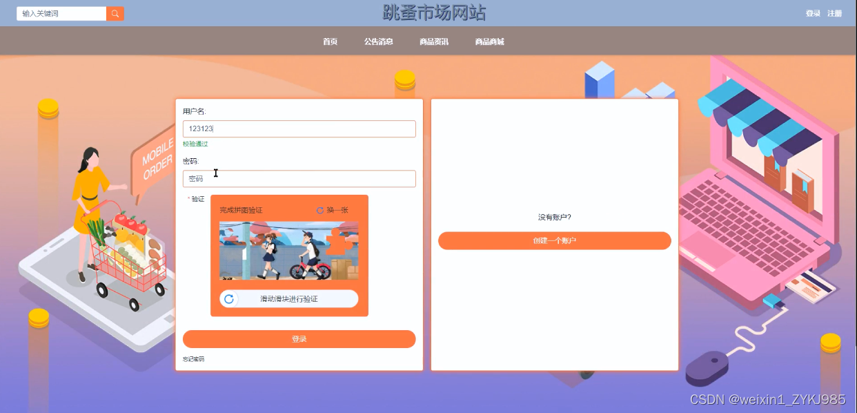 跳蚤市场网站中的前台上注册后的用户是可以通过自己的账户名和密码进行登录的,当用户输入完整的自己的账户名和密码信息并点击“登录”按钮后,将会首先验证输入的有没有空数据,再次验证输入的账户名+密码和数据库中当前保存的用户信息是否一致,只有在一致后将会登录成功并自动跳转到跳蚤市场网站的首页中;否则将会提示相应错误信息,登录界面如下图4-2所示。
