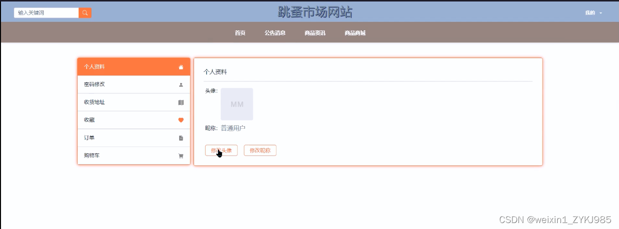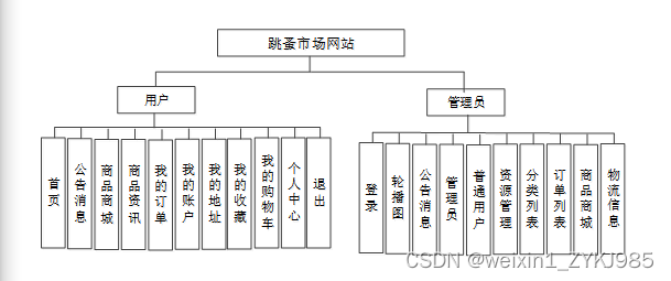 按照跳蚤市场网站的角色,我划分为了普通用户管理模块和管理员管理模块这两大部分。