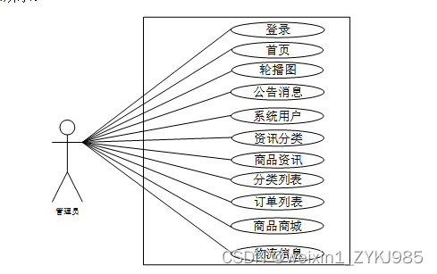web后台管理上的管理员是维护整个跳蚤市场网站中所有数据信息的。管理员角色用例如图2-4所示。