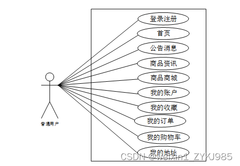 通过2.3功能的分析,得出了本跳蚤市场网站的用例图: