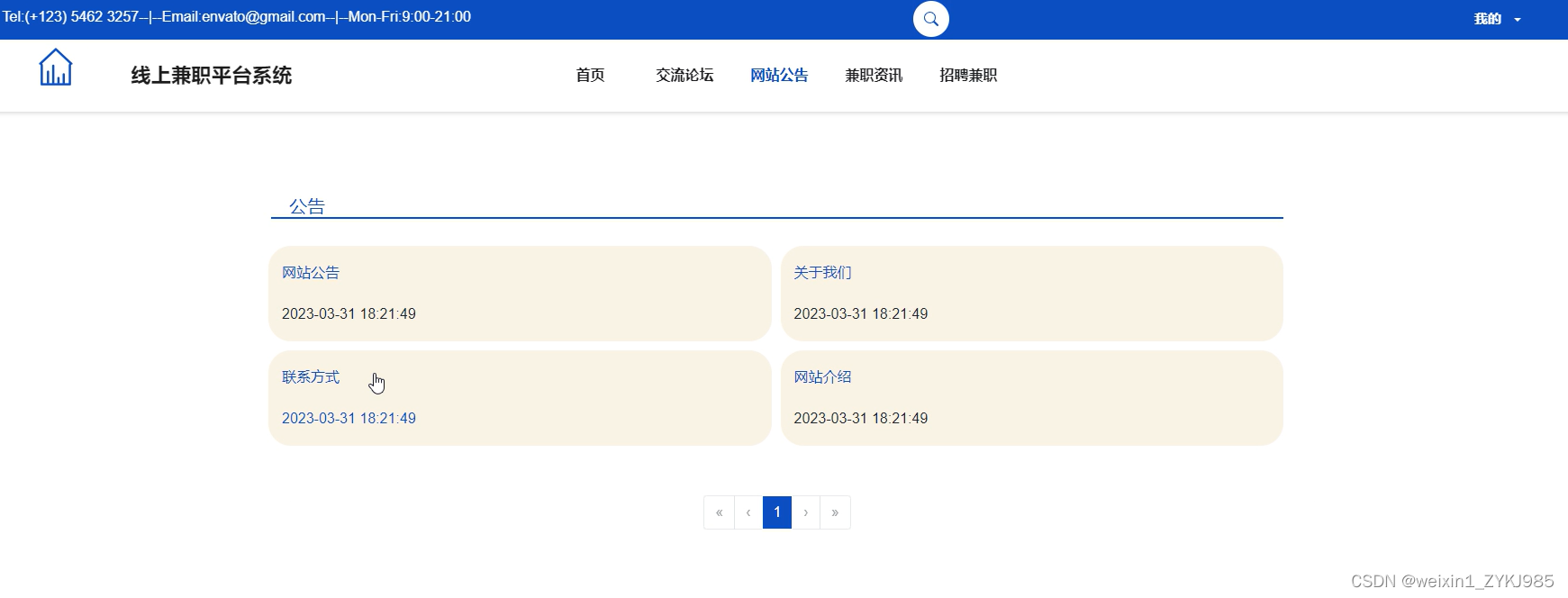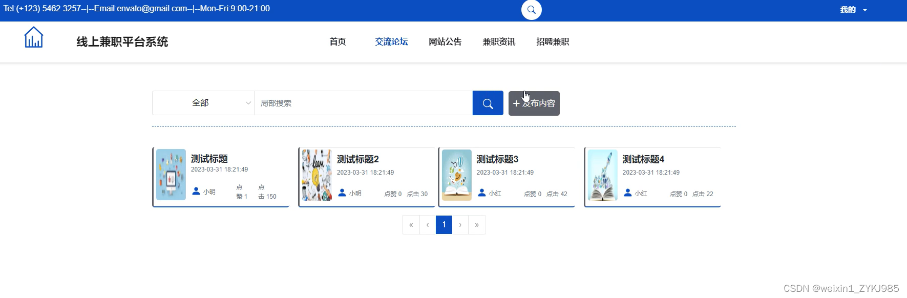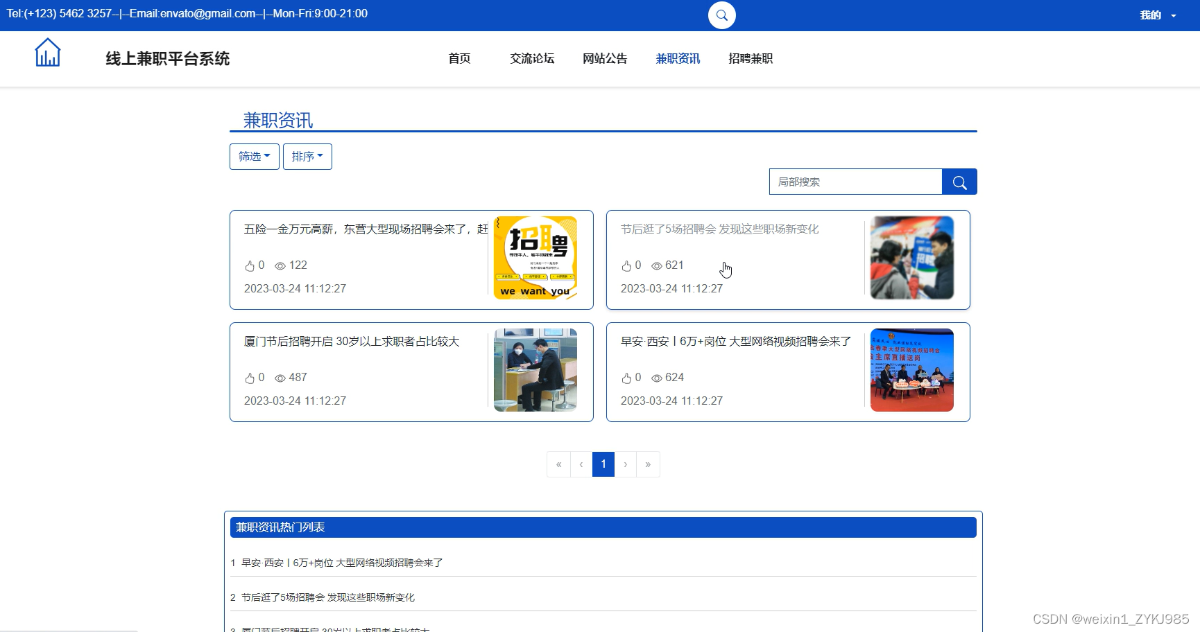 兼职资讯信息管理:发布、删除相关的兼职资讯信息。