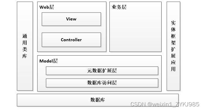 本线上兼职平台系统的架构设计主要分为可以3层,主要有Web层,业务层,Model层。其中web层还包括View层和Controller层,Model层包括元数据扩展层和数据访问层。