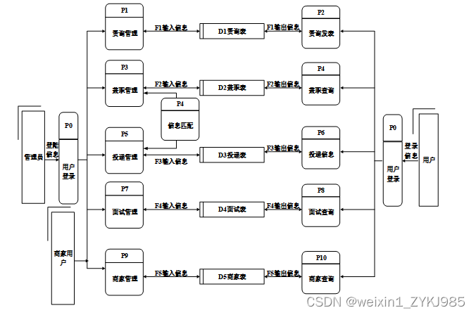 对系统的数据流进行分析,系统的使用者分为二类,一般用户,管理员。系统主要对界面信息传送,登录信息的验证,注册信息的接收,用户各种操作的响应做处理。