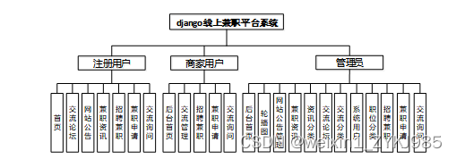 线上兼职平台系统总体分为前台用户模块和后台管理员模块。