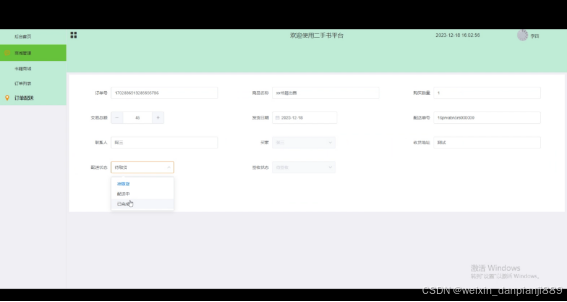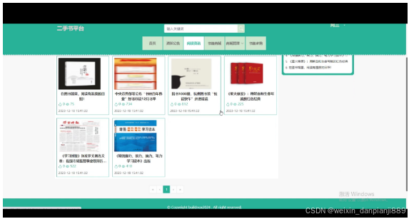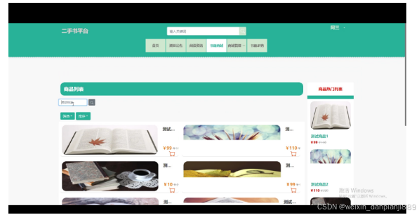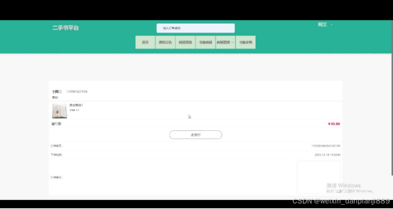 (4)书籍商城:提供在线购买二手书籍的平台,分类展示不同类型的书籍,用户可以选择并加入购物车,进行结算。