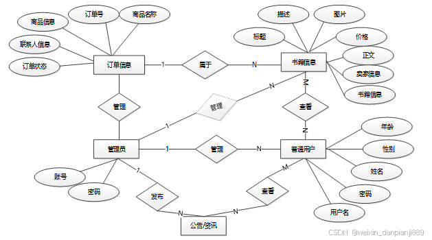 下面是整个二手书平台中主要的数据库表总E-R实体关系图。