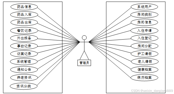 该养老智慧服务平台提供了多种功能,包括查看房间信息、入住申请、入住登记、房间分配、护工请假、老人请假、健康档案、病历档案.、药品信息、药品入库、药品出库、餐饮记录、外出报备、事故记录、访案记录等,提供全面的社区养老服务管理。管理员负责安全、高效地存储、管理和维护系统,同时拥有对后台操作的完整控制权,以确保系统的正常运行。