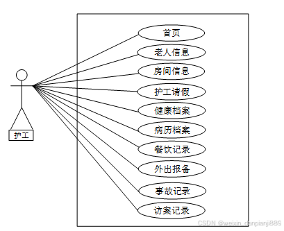 (11)事故记录:记录老人发生的事故情况,如跌倒、滑倒等。提供事原因和事故记录功能,方便护工和管理人员进行事故管理和分析。