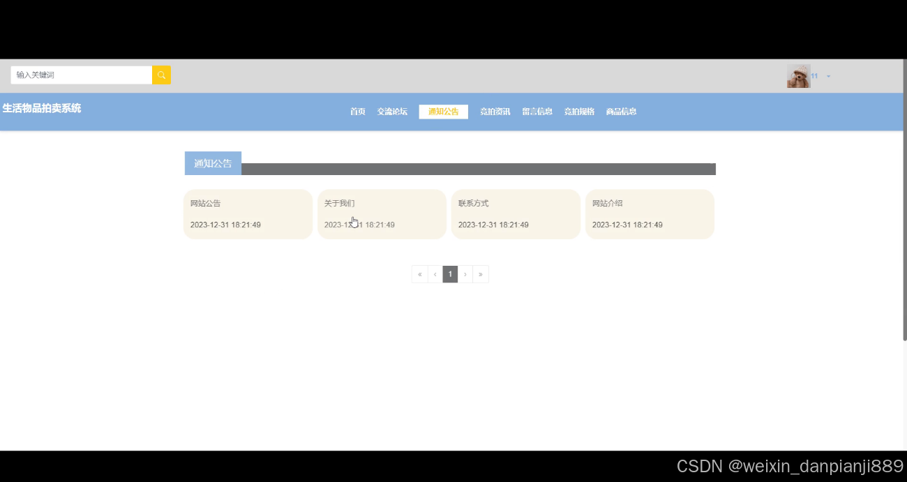 - 通知公告:系统管理员发布重要通知和公告,如竞拍规则变更、系统升级等。用户可以查看通知公告,及时了解相关信息。