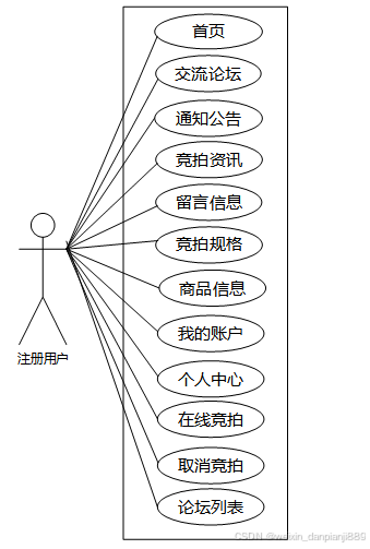 生活物品拍卖系统中注册用户角色用例图如图2.1所示: