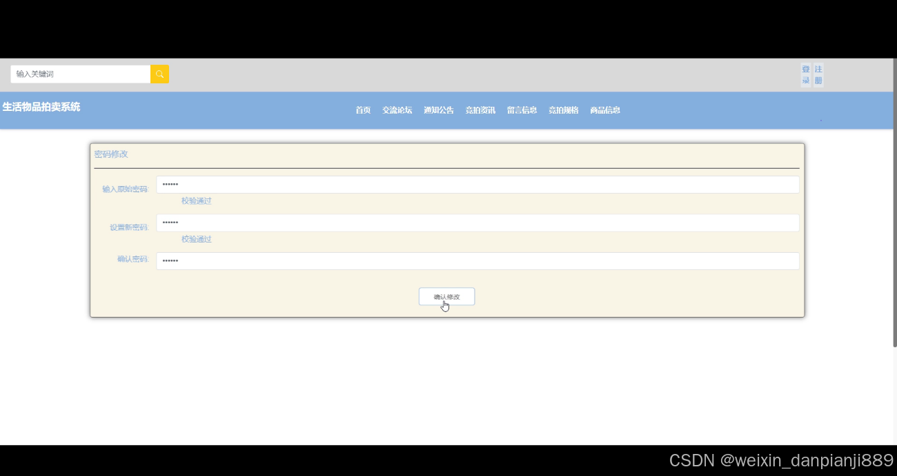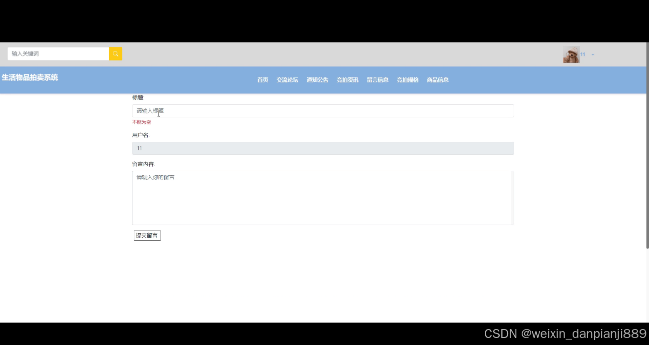- 在线竞拍:用户可以在竞拍页面查看正在进行的竞拍活动,提交出价并跟踪自己的竞拍记录。