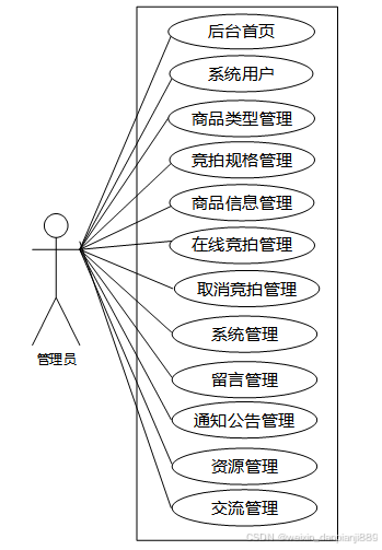 生活物品拍卖系统中管理员用例图如图2.2所示: