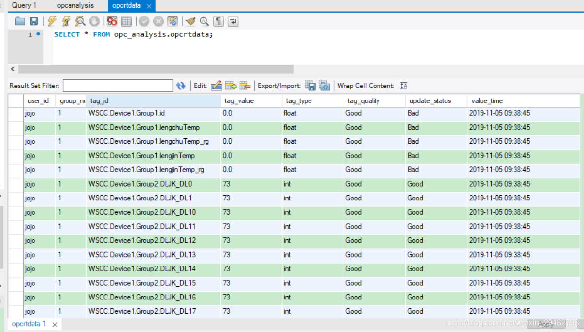 图8 OPC分组实时数据+变化数据到MySQL数据库