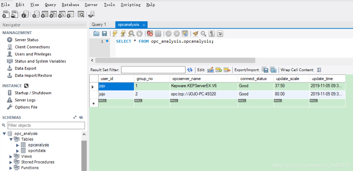 图 7 更新多个OPC服务器的连接状态到MySQL数据库