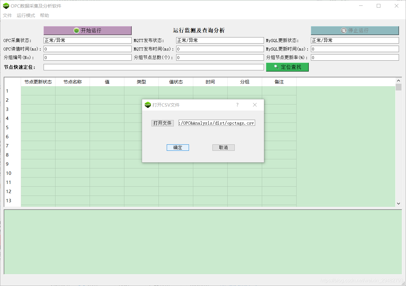 (7) 运行监测及自诊断和恢复:支持OPC、MySQL、MQTT的断线重连和故障信息显示,支持MQTT断网续存功能;