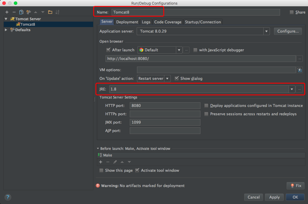 然后对Tomcat进行配置:修改名称,选择jre版本