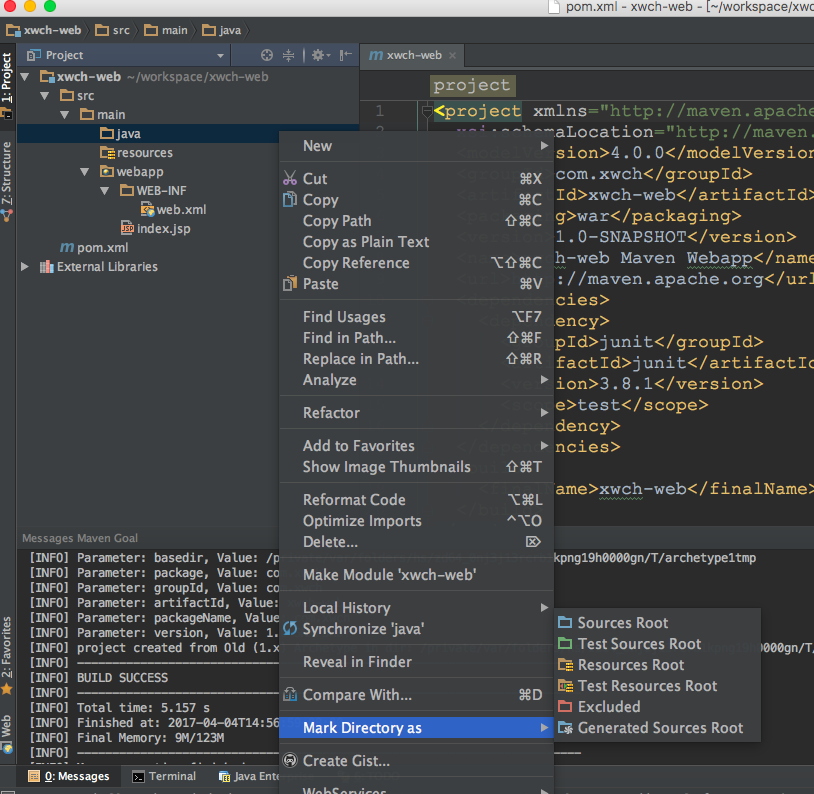 9.对java目录右键,选择Make Directory as-->选择Source Root