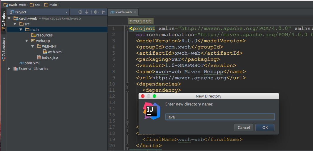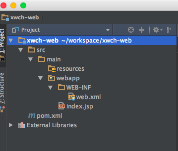 7.生成的目录结构图,此时在main下缺少一个java目录,需要自己创建。