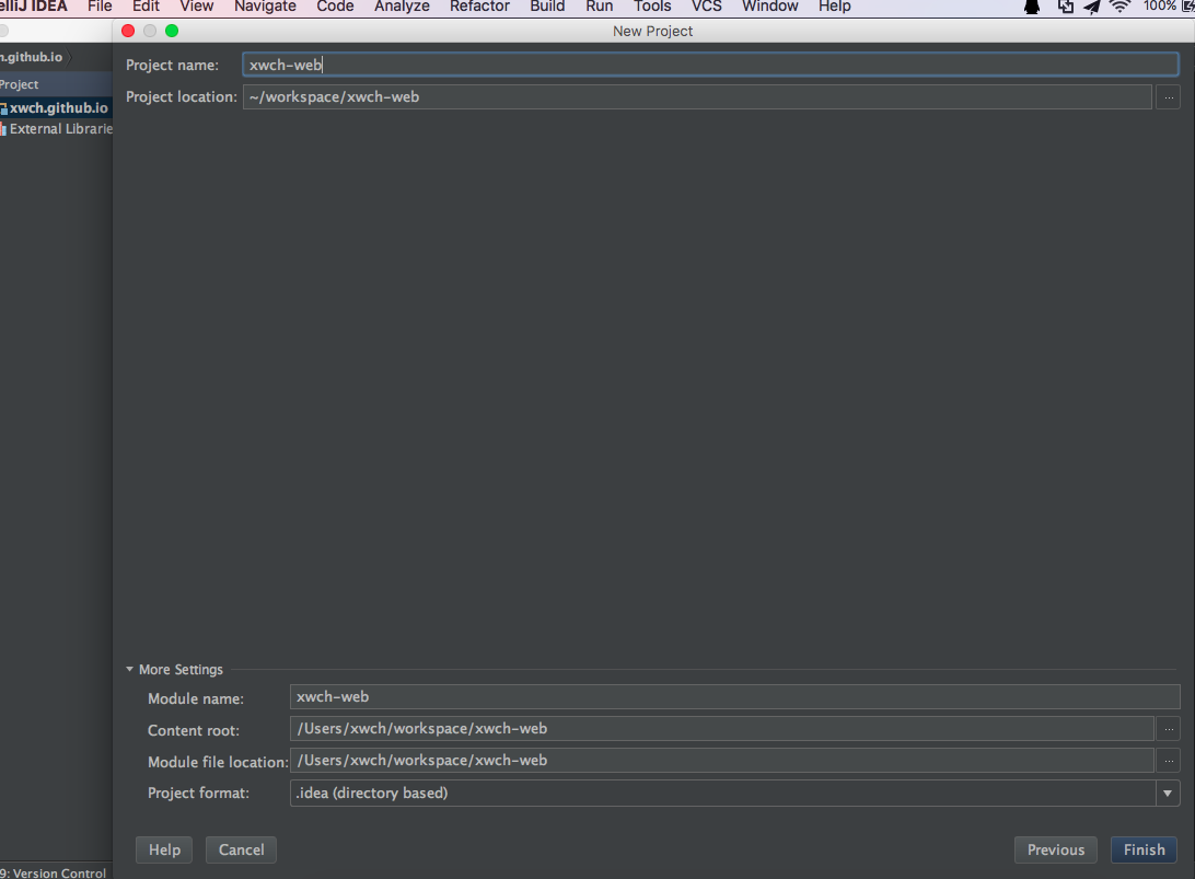 6.填写项目名称Project name,项目路径Project location,然后Finish