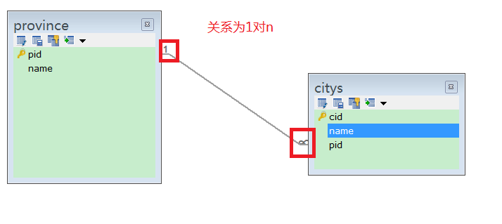 select p.name,c.name from province p,citys c where p.pid=c.pid and p.name='北京';