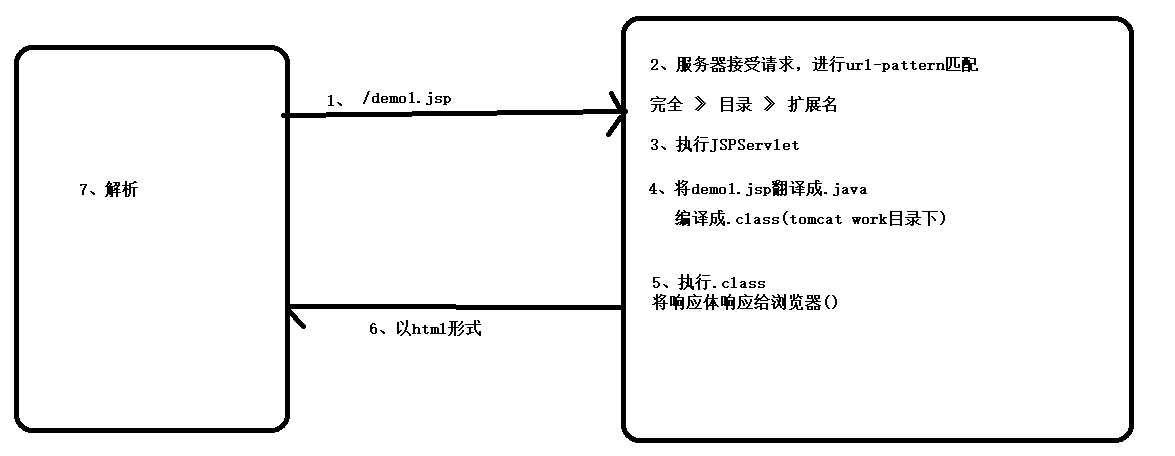 一个jsp在第一次访问时,会被容器(服务器)中的jsp引擎(容器中编译jsp的软件模块)