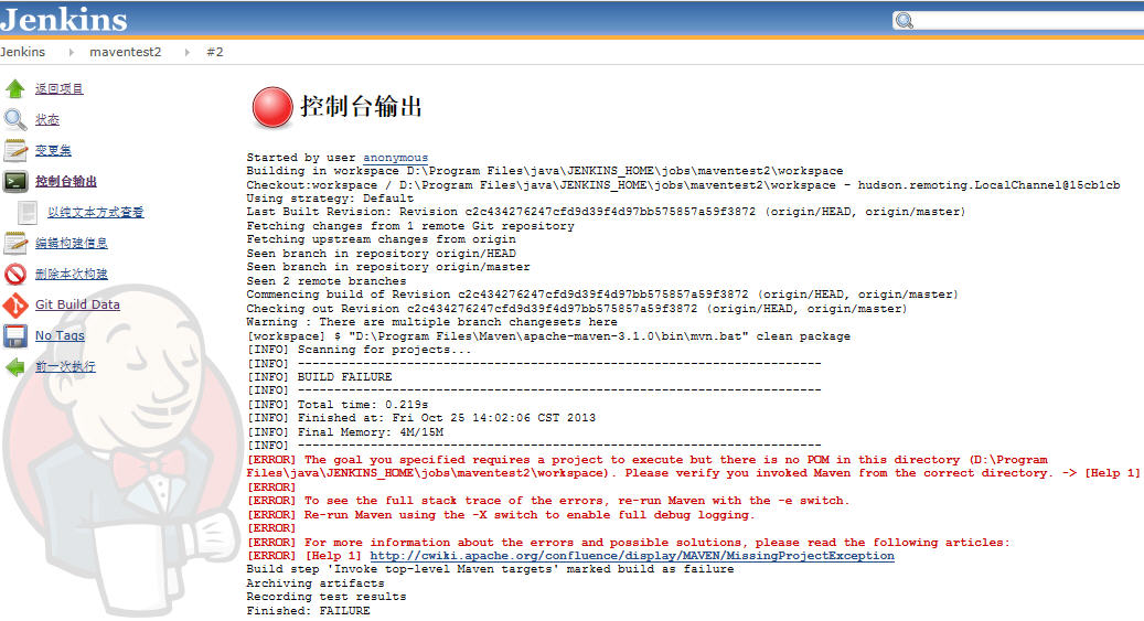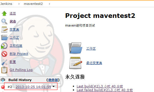 3、点击上面构建历史记录的链接,查看构建结果详情页面如下图: