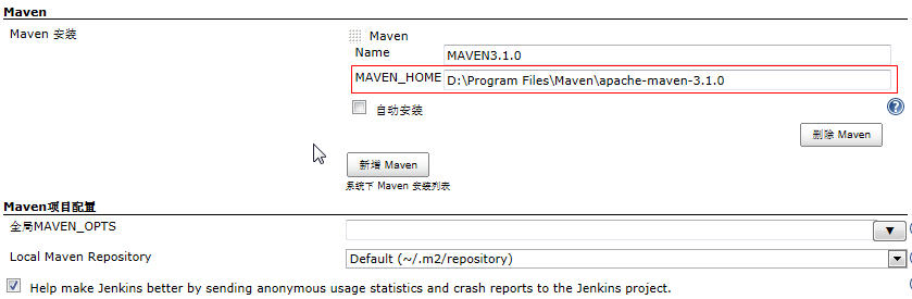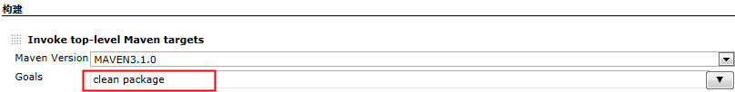 在构建里,点击“增加构建步骤”,选择Invoke top-level Maven targets,输入如下图:
