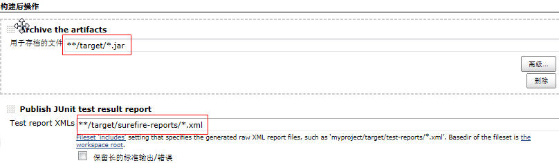 配置构建结果归档,构建输出报告, javadoc报告, 代码覆盖报告等: