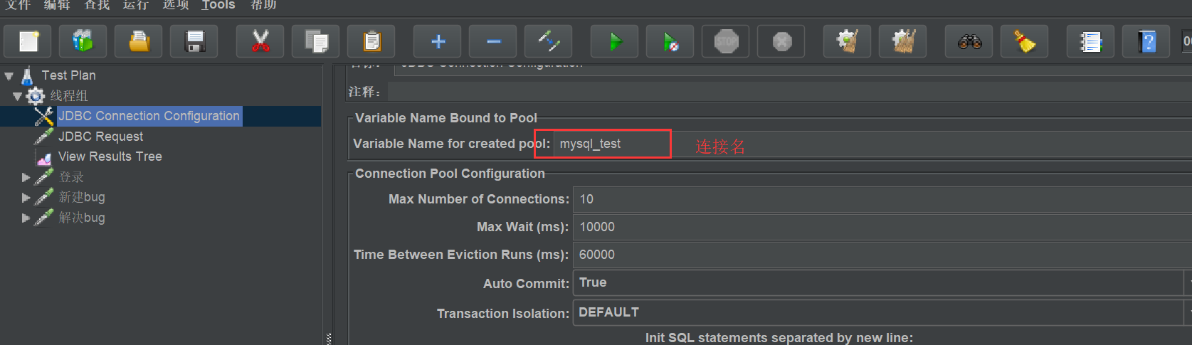 Validation Query:验证查询,不同版本的填写格式可能不同(比如3.1是Select 1,2.6是Select1),格式错误会报错。最新的Jmeter5.1.1下拉框可选择。
